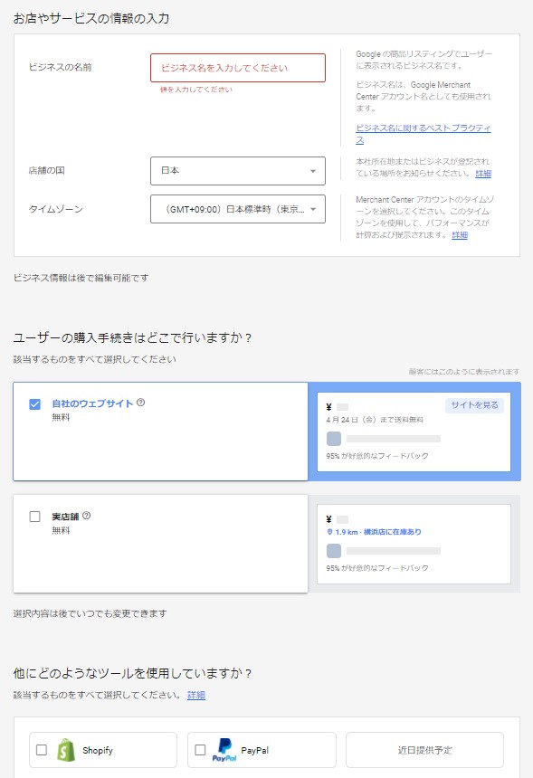 参考:Google Merchant Center に登録する Google Merchant Center ヘルプ
