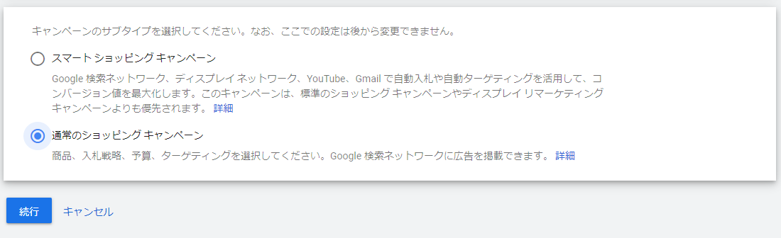 ②キャンペーンのサブタイプ「通常のショッピングキャンペーン」を選択