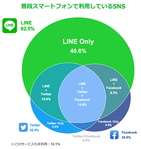 LINEは2020年10月時点で、月間アクティブユーザーが8600万人ほどのチャットSNSです。日本の利用ユーザーが非常に多く、広告を配信する際に圧倒的なリーチ力があり、2020年1月にLINEが行った調査によると、TwitterやFacebookを使わず、LINEのみを利用しているユーザーは40.6%にも及びLINEでしかリーチできないユーザーが多く潜んでいることがわかりました。