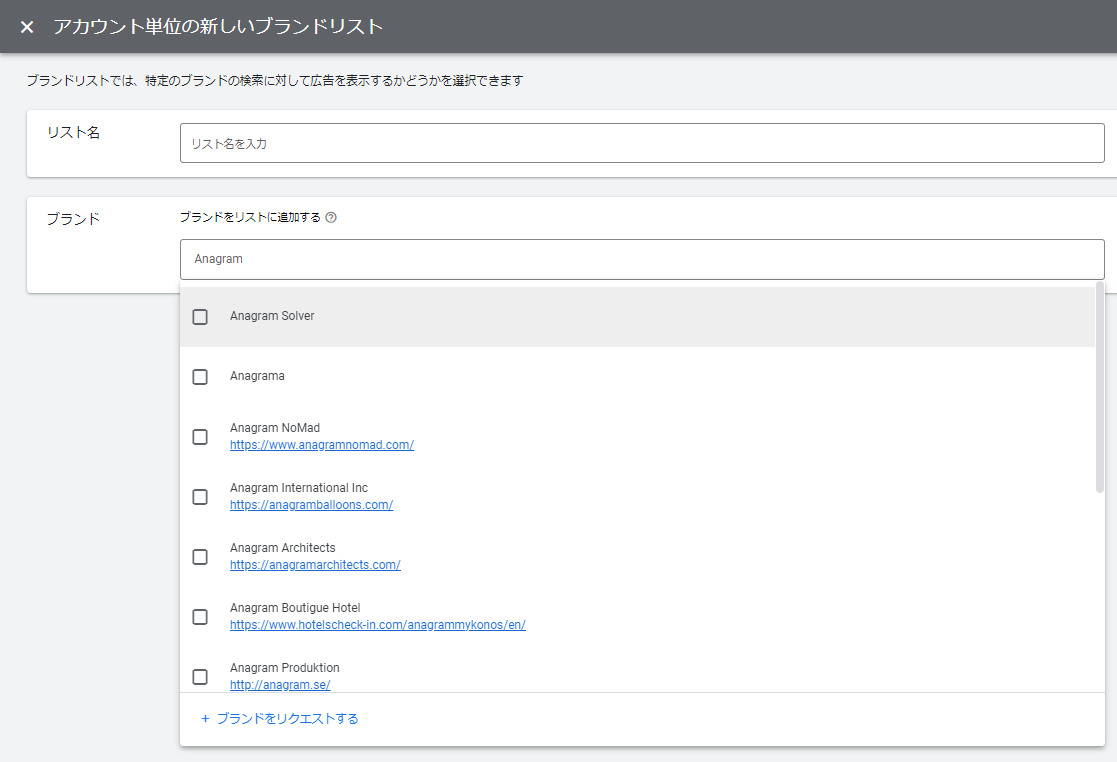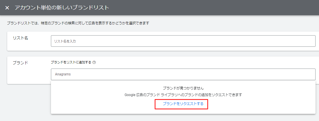 もしリストに該当するブランドがない場合には、「ブランドをリクエストする」をクリックして追加をリクエストできます。