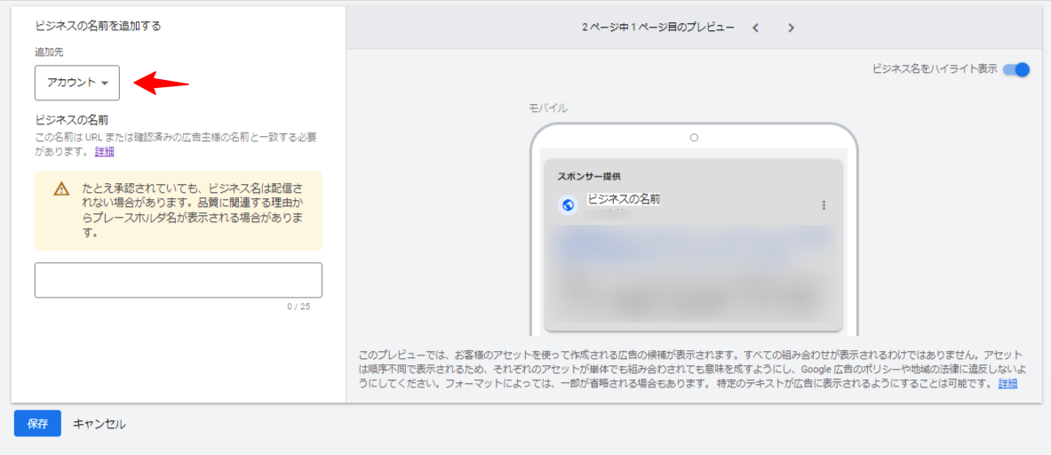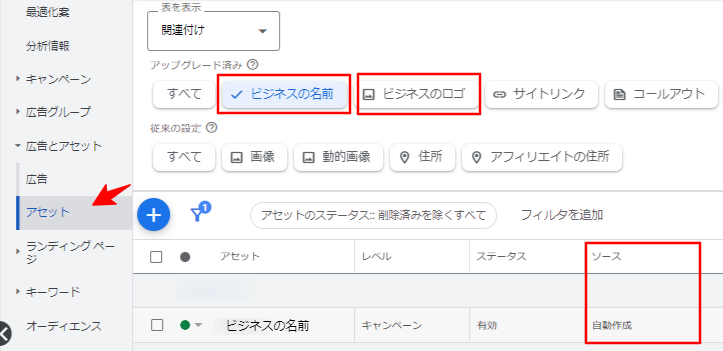 ビジネス情報アセットとは、ビジネスの名前やロゴなどの情報を広告に追加する機能です。