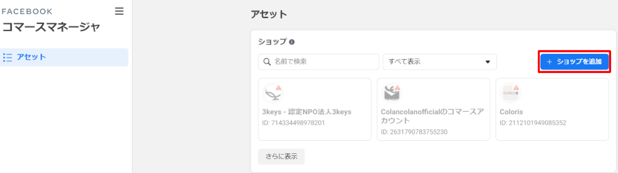 1.コマースマネージャーにログインした状態から「ショップを追加」を選択します。