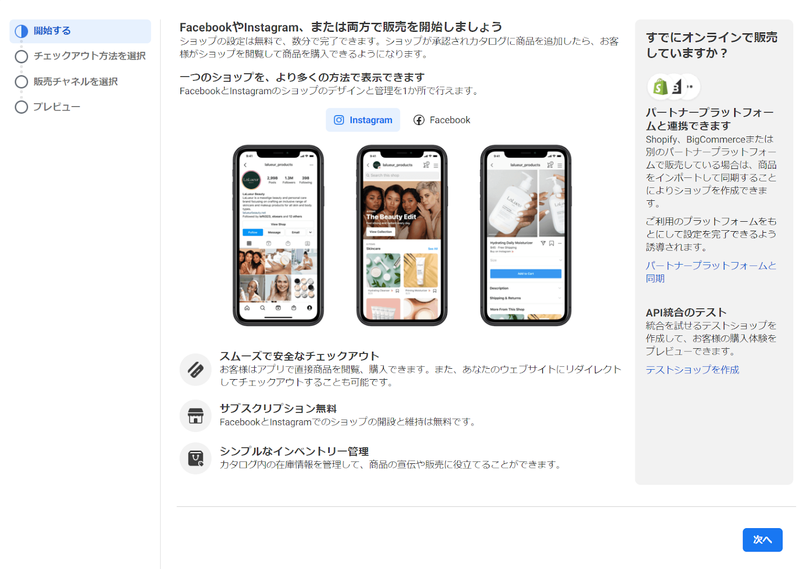 FacebookとInstagramで商品を展示できる(ショップ)