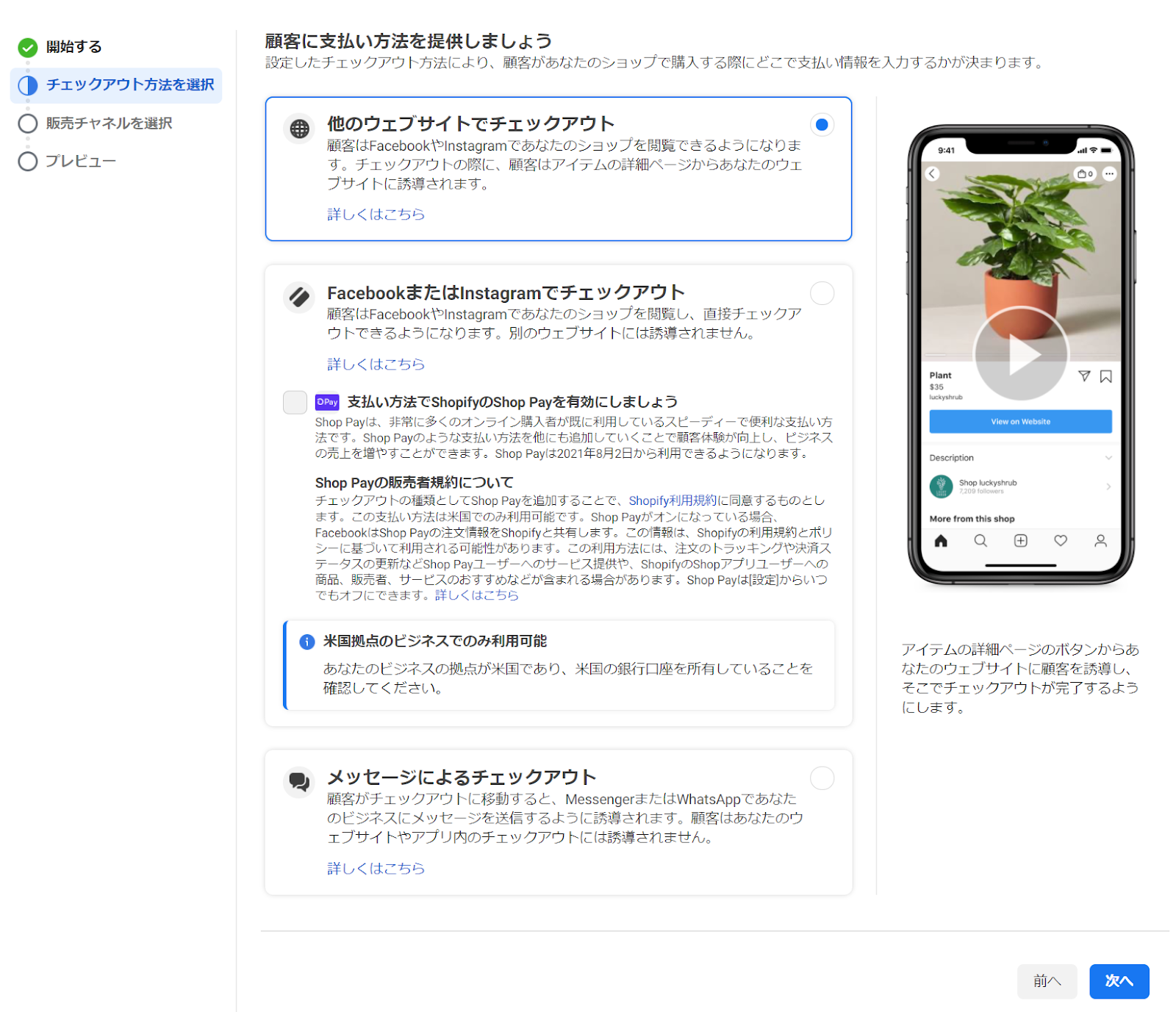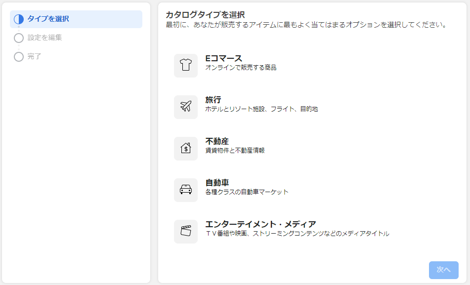 3.宣伝または販売するアイテムの種類を選択して、「次へ」を選択します。