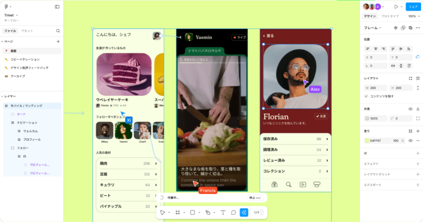 そこでおすすめしたいツールが「Figma」です。構成・デザイン・フィードバックまで1つの画面で完結できるため、関係者全員が同じ画面を見ながらスピーディーにやりとりできます。