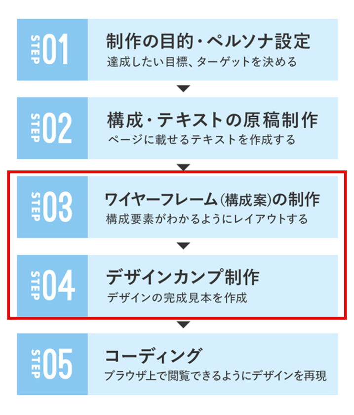 このうち、Figmaを使うのは「ワイヤーフレーム制作」「デザインカンプ制作」の工程です。