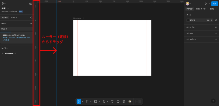 なお、Figmaでは「ワイヤーフレームモード」「デザインカンプモード」のような切り替えはありません。構成からデザインまで、同じ画面・同じファイル上で作業を進めていきます。