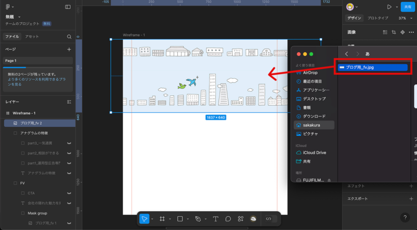 画像として書き出すことで、Figmaを使っていないクライアントや他の関係者に「完成イメージ」として共有しやすくなります。