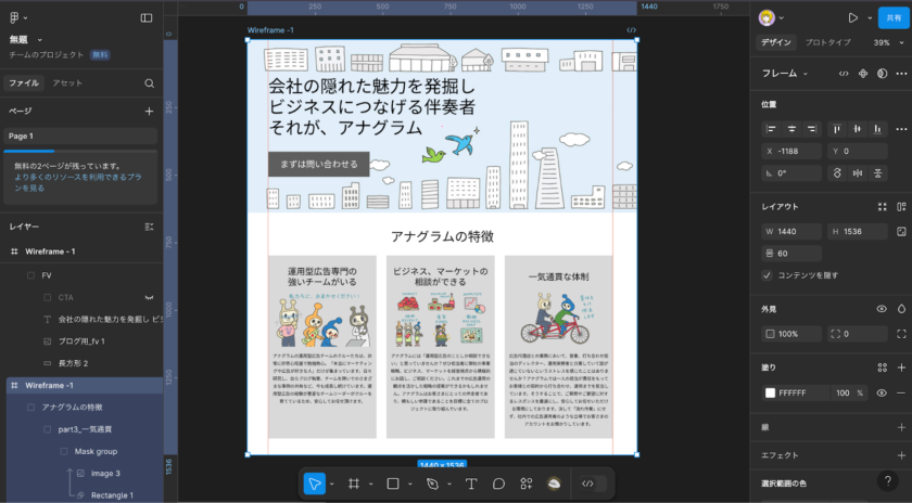 Figmaは無料プランでも、LP制作に必要な基本機能はほとんど使えます。