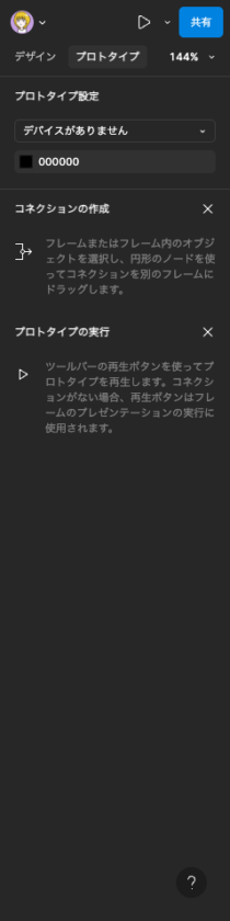 プロトタイプの再生は、画面右上の▶︎マークを選択することで再生できます。