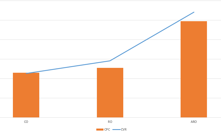 そのためAROエンジンでは上限の入札単価が存在せず、配信の自由度が増す分COやROエンジンでの配信時と比べてCPCが上昇することもあります。ただそれは「期待値の高いユーザーだから高額なCPCでも入札する」とエンジンが判断した結果でもあり、だからこそ配信の機会を得られ、獲得に繋げられたと考えることもできます。