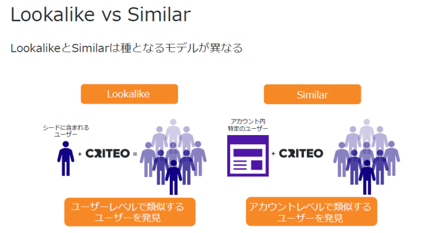 類似ユーザーのターゲティング、という観点においてはこれまでもSimilarオーディエンスという手法がありました。今回のアップデートにある、Lookalikeオーディエンスの類似ユーザーとの違いはなんでしょうか?