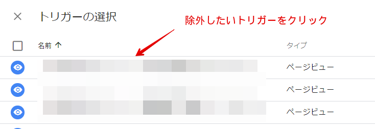 トリガー名で検索し、除外したいトリガーをクリックします。