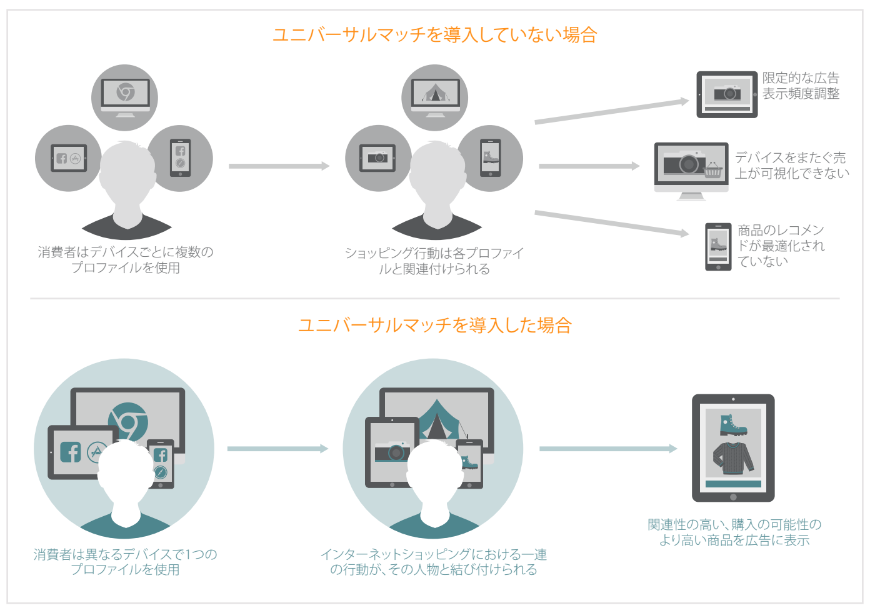 - Universal Matchとは異なるデバイスやブラウザも1人のユーザーとして識別できる機能