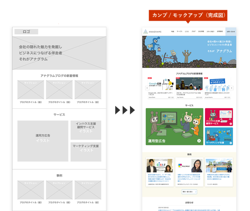 ラフがあることで最小限の工数で制作物のゴールの認識合わせができ、修正などを減らすことができます。