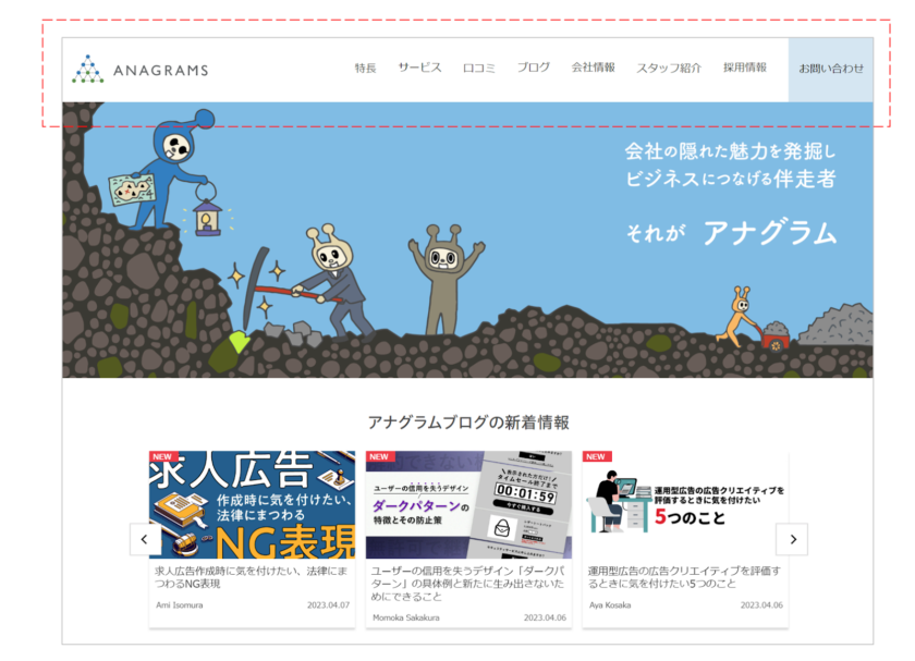 Webページの上部に表示される、タイトルやロゴ、ナビゲーションなどの情報をまとめた部分のことを指します。