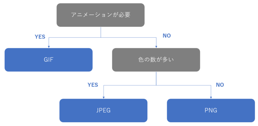 同じ画像でも、「シンプルなイラストならPNGが最適」のようにフォーマットごとの向き不向きがあります。これらの組み合わせが不適当だと、画質の劣化やファイルサイズの肥大化が起こるので、閲覧体験の悪化や読み込みスピードの遅延の原因になり、結果的に広告のパフォーマンスに悪影響を与えます。以下の表やフローチャートを参考に、適切なフォーマットを選択してください。