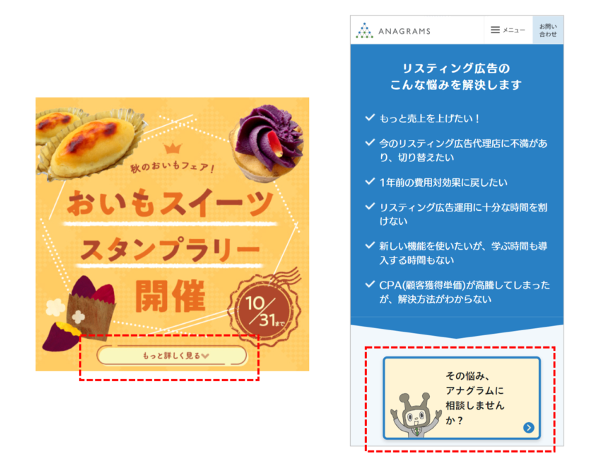 バナー広告にも「詳しく見る」など、ボタンのように見える要素を配置することがあり、便宜上コールトゥアクションと呼ぶことが多いです。