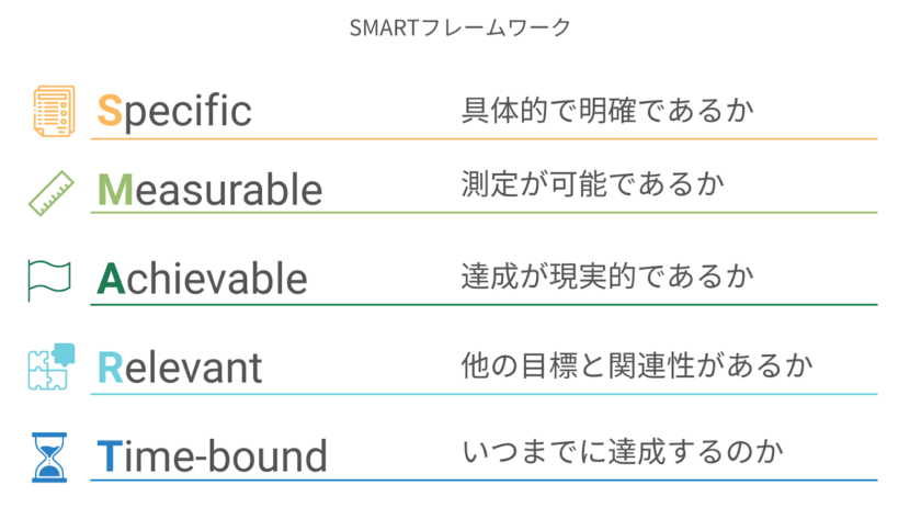 こうした目標は、SMARTの原則に沿って設定すると、より実行しやすくなります。