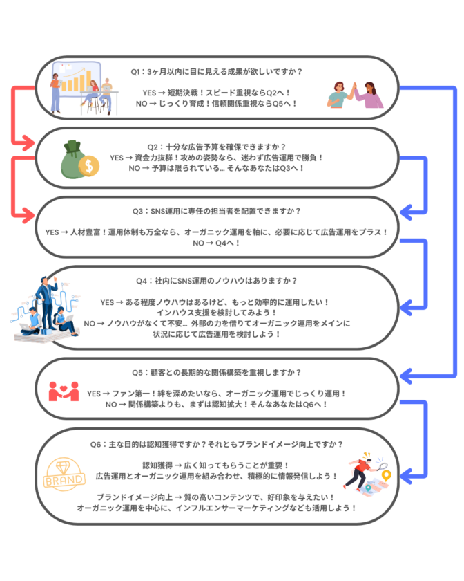 ここからは、目的や状況に応じて「オーガニック運用」と「広告運用」のどちらを選ぶべきか、その判断軸と具体的な実行ステップをわかりやすくご紹介していきます。