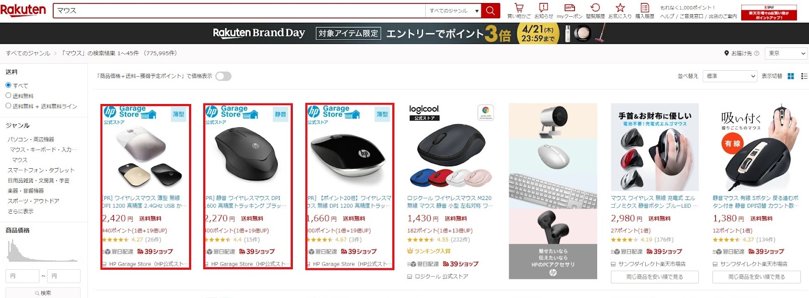 RPP広告(Rakuten Promotion Platform、楽天プロモーションプラットフォーム)は、楽天市場内の検索結果画面に表示される検索連動型の広告です。