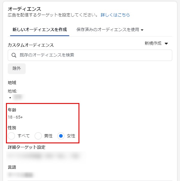 今回は「性別」を変数としたA/Bテストを行いたいので、複製元の広告セットと異なる「女性」を選択して「公開する」をクリックでA/Bテストの設定完了です。