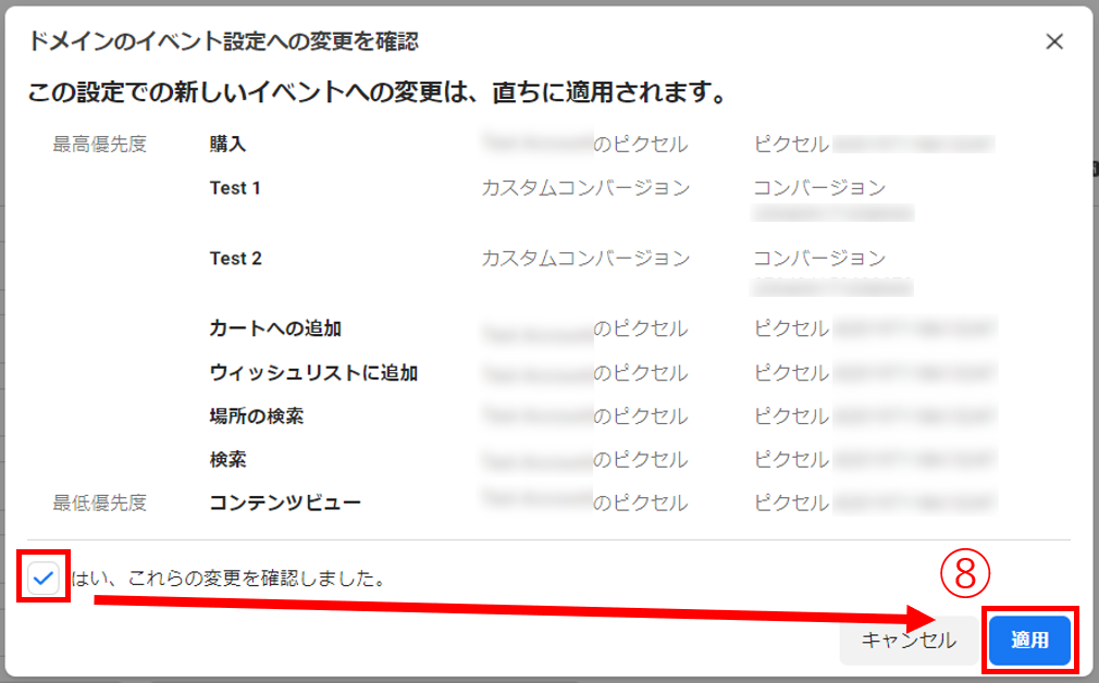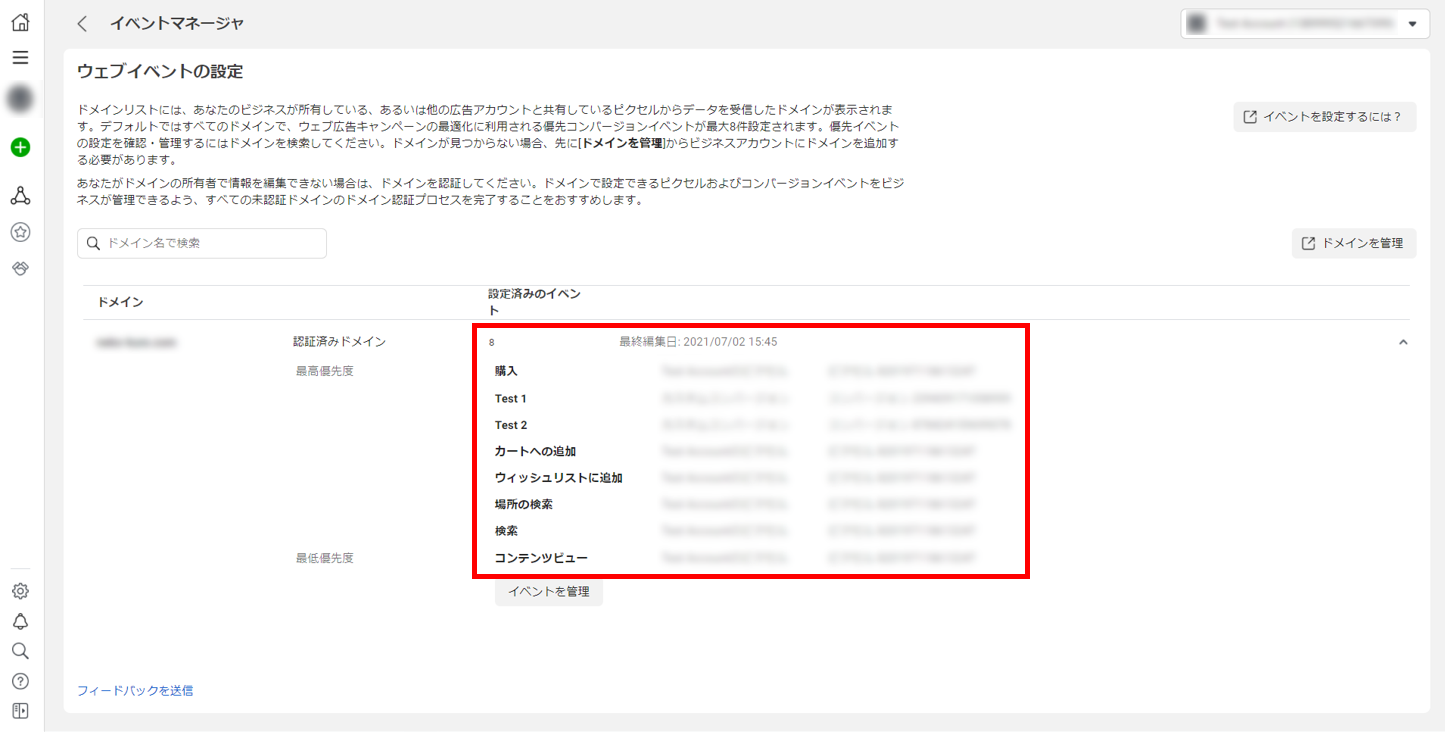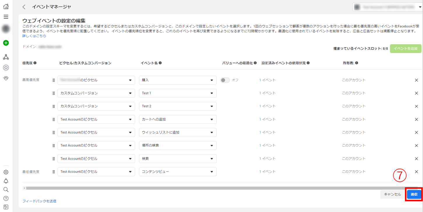 - ドメインに関係している全ての広告アカウント・ピクセル・イベントが整理できているか(その上でイベントが8件に収まるよう上手く調整ができているか)