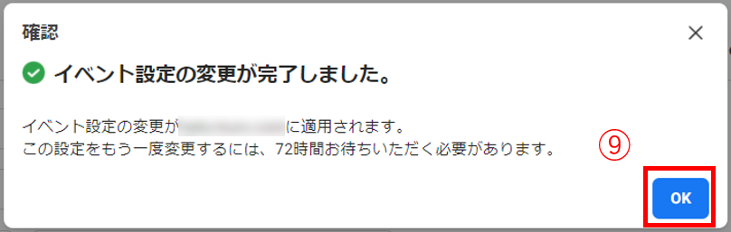 ⑨イベント設定の変更が完了したことを確認し、[OK]をクリック