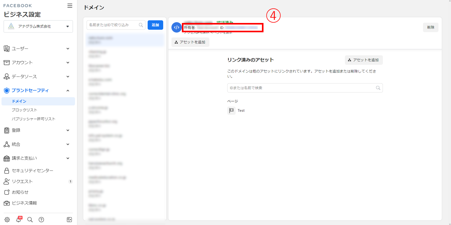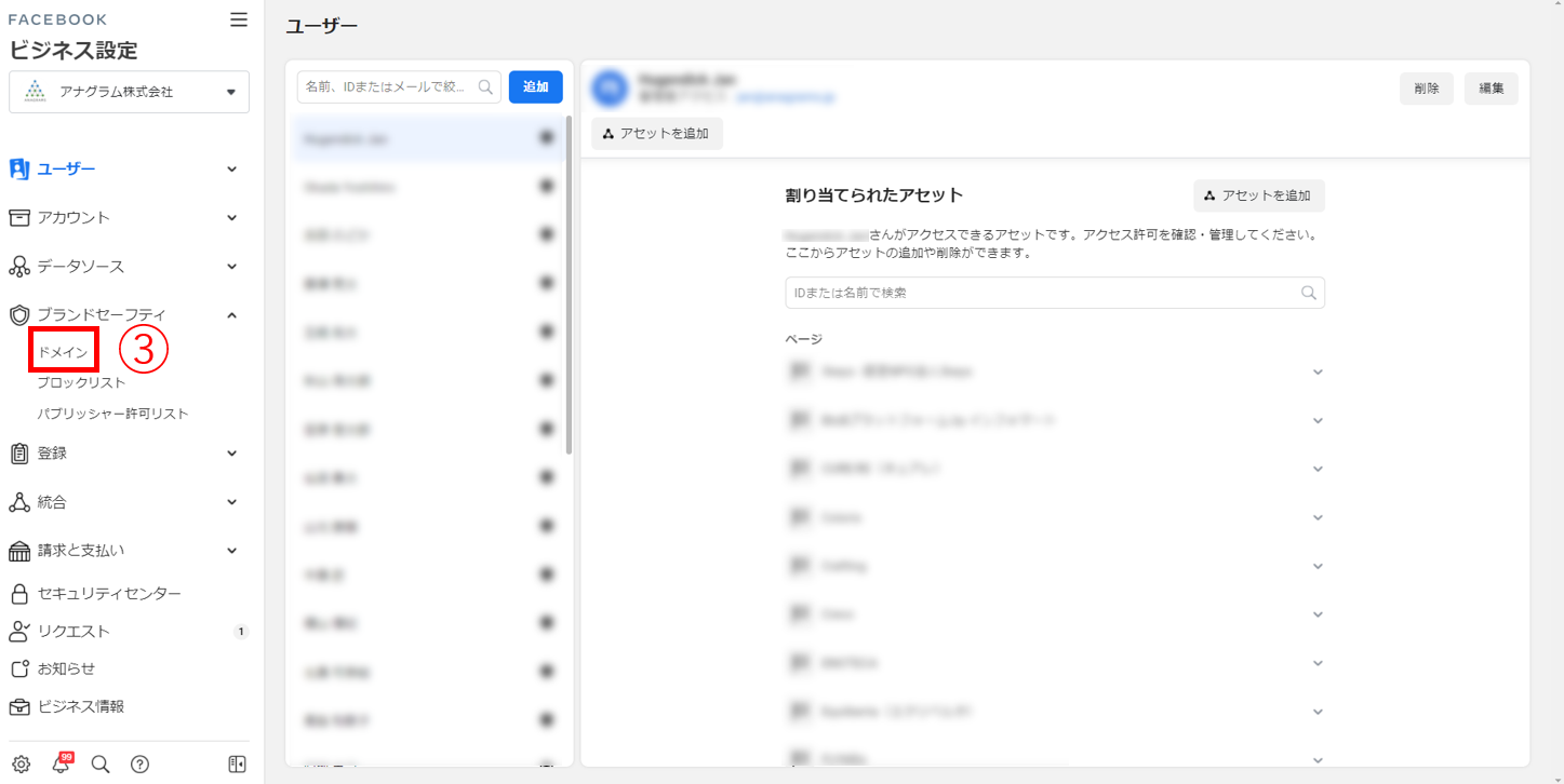 ③[ブランドセーフティ]タブを開き、[ドメイン]をクリック