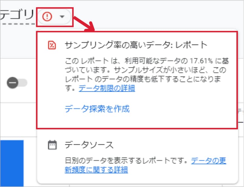 例: 「サンプリングデータ」や「サンプリング率(例:●●%)」といった表示が出ていれば、サンプリングが適用されています。