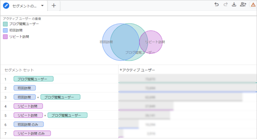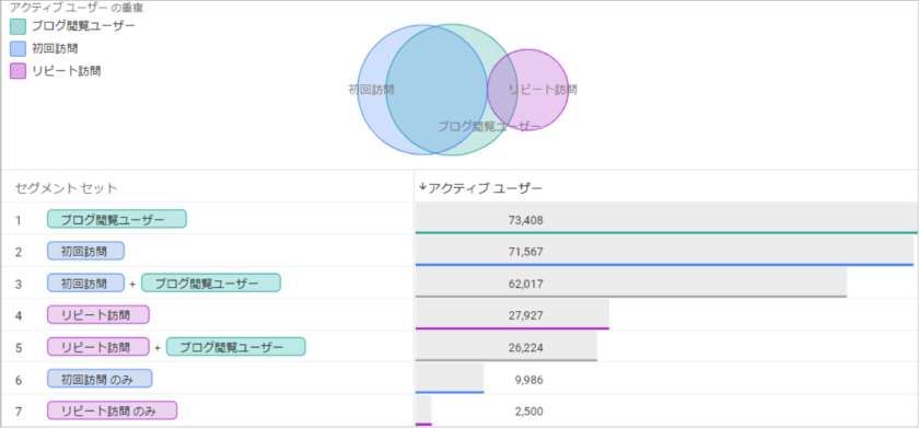 コンテンツ閲覧のボリュームやユーザー比率を確認したい(セグメントの重複)
