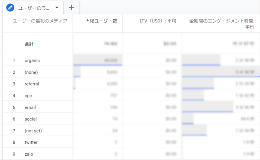 ユーザーのライフタイムは、ユーザーが初めて訪問した時点から、その後の行動データも含めて分析できるレポート形式です。このレポートでは、単一の訪問データだけではなく、ユーザーが繰り返し訪問したり、購入やその他のアクションを実行したりする長期的な価値(LTV: 顧客生涯価値)を確認できます。