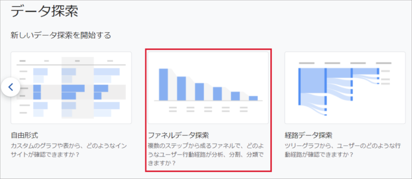テンプレートギャラリーから「ファネルデータ探索」をクリック