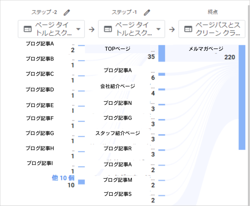 今回は情報発信しているメールマガジンページページに到達するまでの経路分析をしたところ多くはブログページを経由していることが分かりました。
