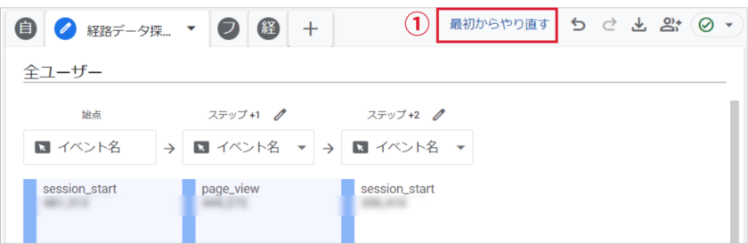 ①最初からやり直すをクリック。