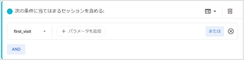 次の条件に当てはまるセッションを含める:first_visit