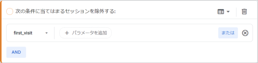 次の条件に当てはまるセッションを除外する:first_visit