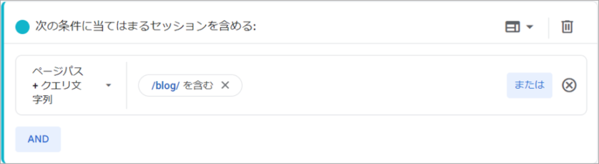 次の条件に当てはまるセッションを除外する:ページパス+クエリ文字列: /blog/ を含む
