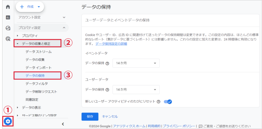 GA4ではデータの保持期間が過去2か月か14か月に限定されます。