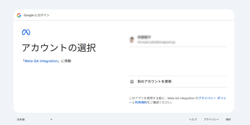 4.連携に必要な権限を保持しているGoogleアカウントを選択し、MetaにGA4のデータ共有する許可をします。
