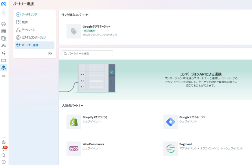 1.イベントマネージャを開き、左側のナビゲーションメニューで[パートナー連携]を選択します。