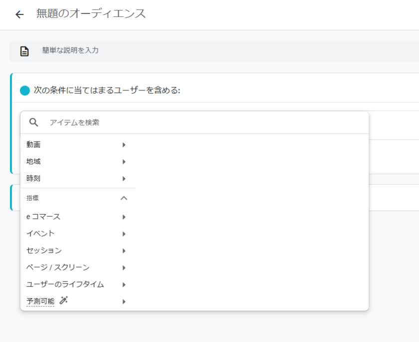 予測指標とは、Googleの機械学習がユーザー行動分析して得られるユーザーの今後の行動を予測した指標を指します。