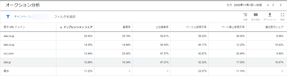 Google広告のオークション分析レポートで使われる指標