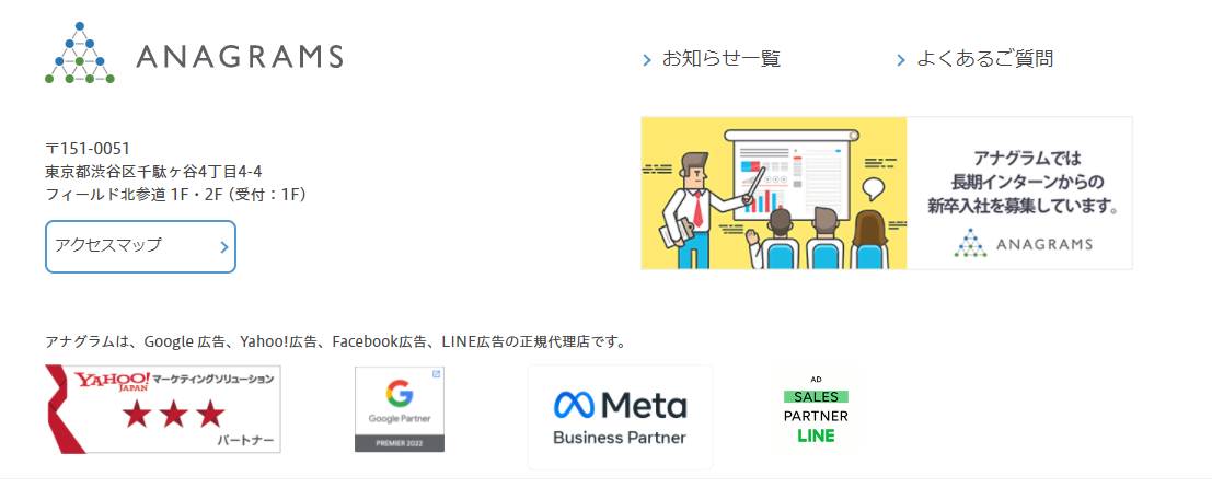 ちなみに、Google 認定パートナーとして認められるとGoogle Partner バッジが付与されます。本ページのフッターにも設置があるのでご覧ください。
