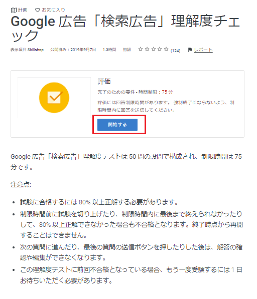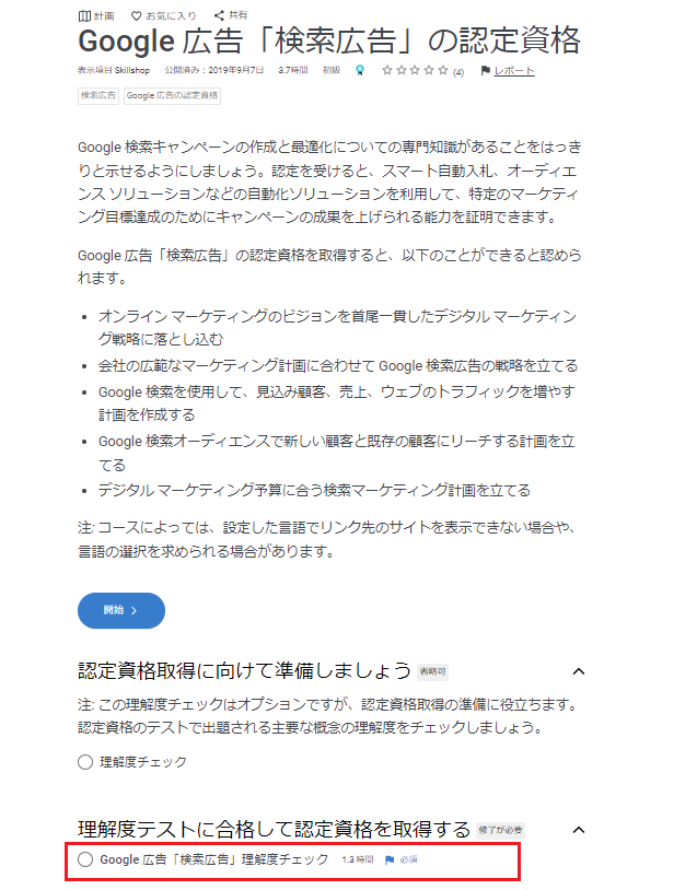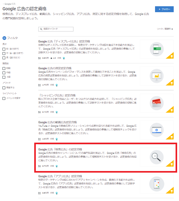 今回は例として、「Gooogle 広告『検索広告』の認定資格」を選択する