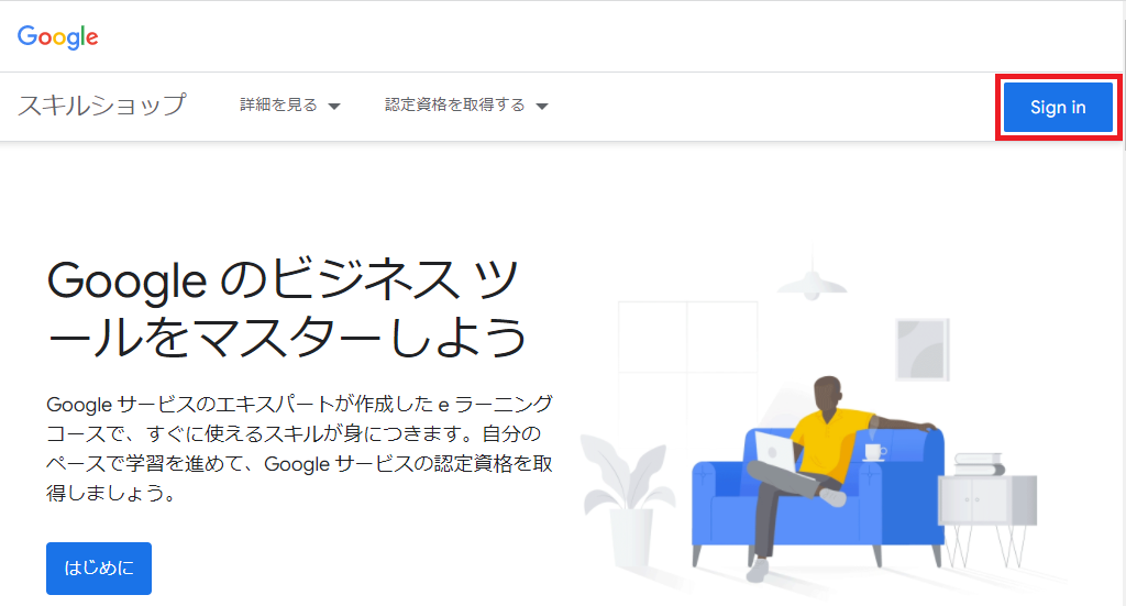 Google 広告の認定資格はスキルショップで受講することで取得できます。スキルショップへはこちらからアクセスします。