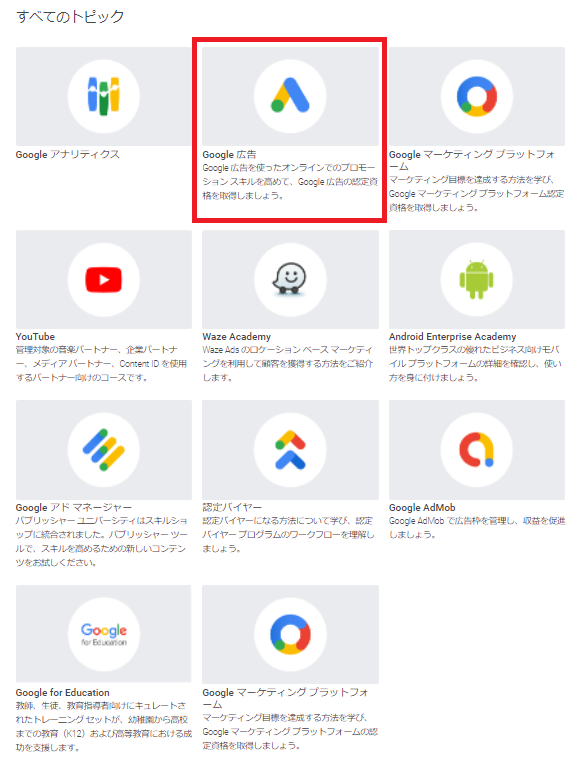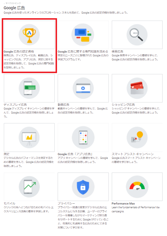 参考:Google 広告の認定資格について – Google 広告 ヘルプ
