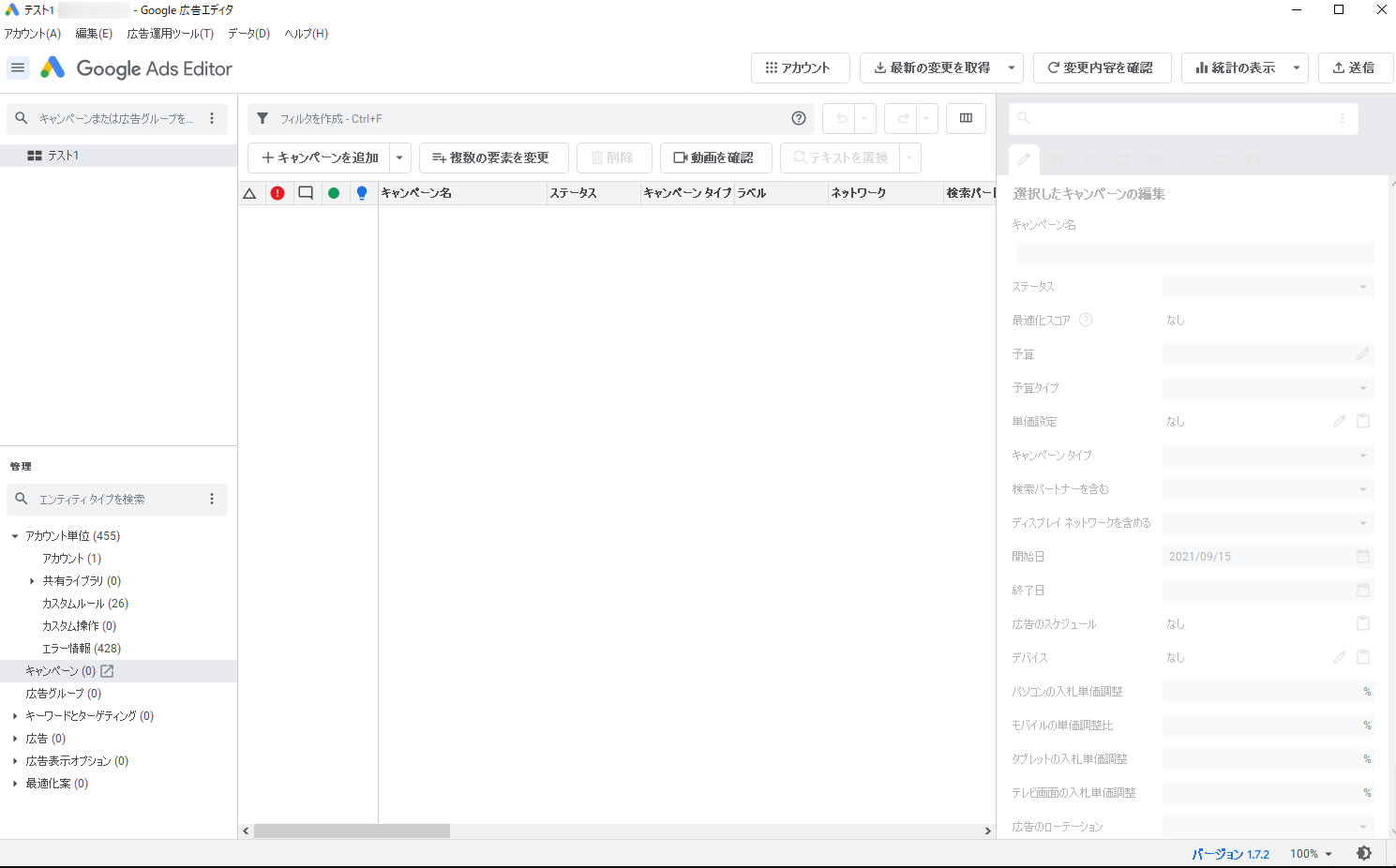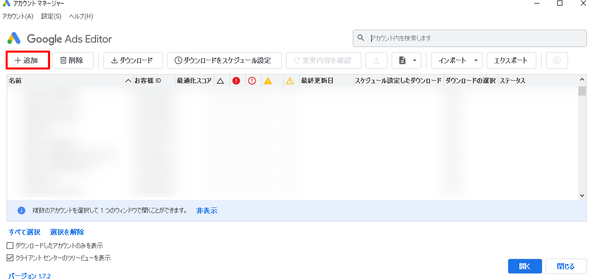Google 広告エディタのインストールが完了したら、次に手を加えたい広告アカウントを追加します。