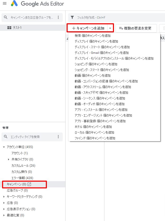 ここまでできれば入稿前の準備はバッチリです。今回はまず、新しいキャンペーンを追加する場合のGoolge 広告エディタの使い方を紹介していきます。