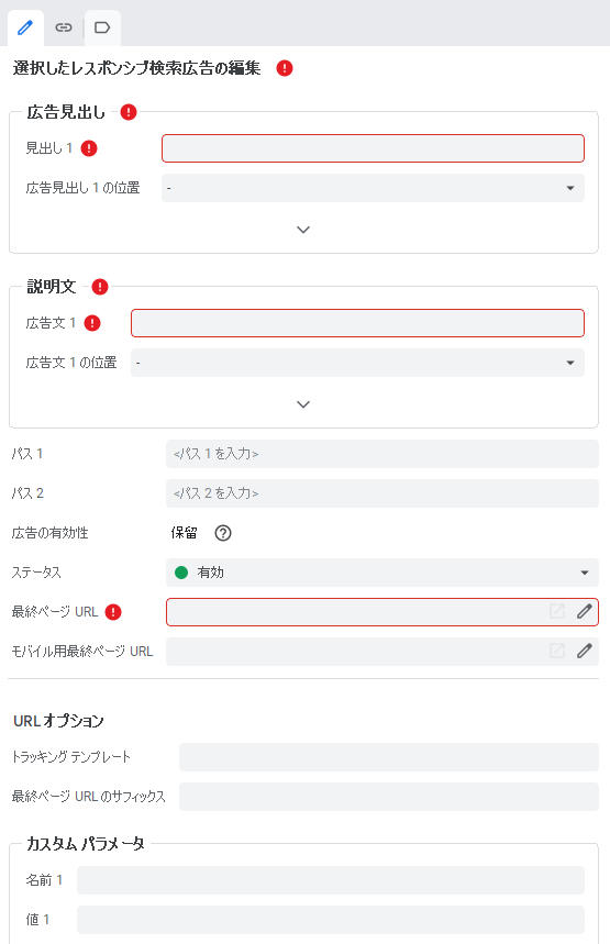 こちらでは例としてレスポンシブ検索広告を追加する場合を見ていきます。